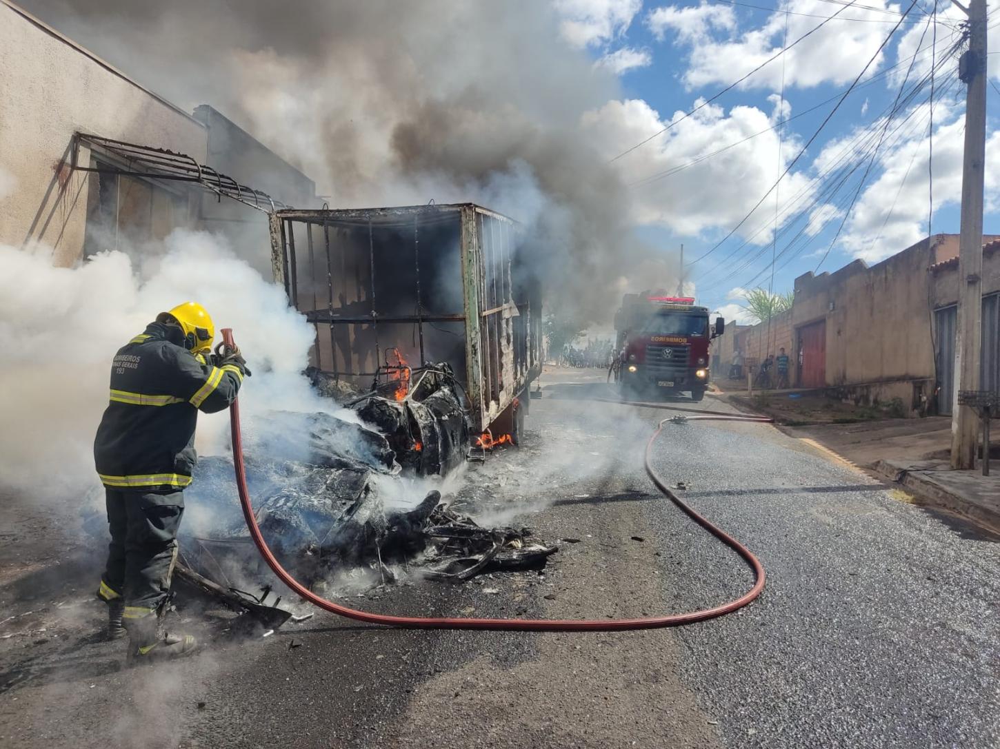 Na manhã deste sábado (31), por volta das 11H30, na Rua Pedro Alves Barcelos, bairro Max Newman, em Araxá, MG, foi empenhada uma Guarnição dos Bombeiros para combate a incêndio em um caminhão baú. Ao chegar no local a equipe se deparou com o veículo tomado pelas chamas e armou uma linha de combate a incêndio com divisor e extinguiu o incêndio.