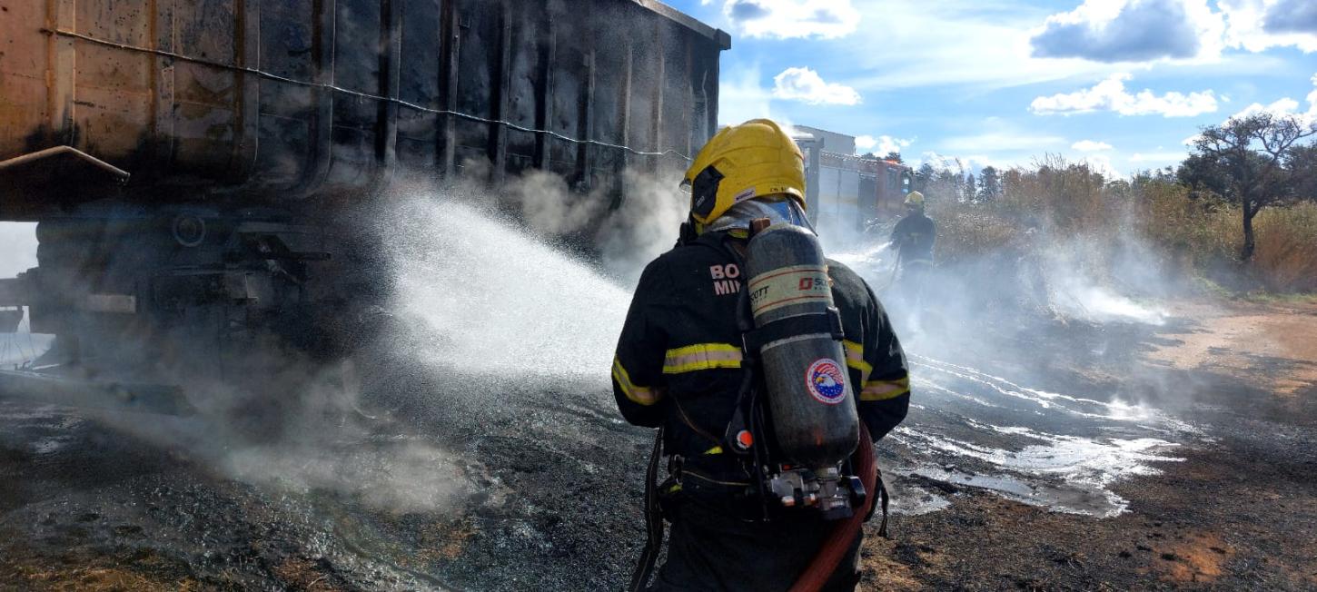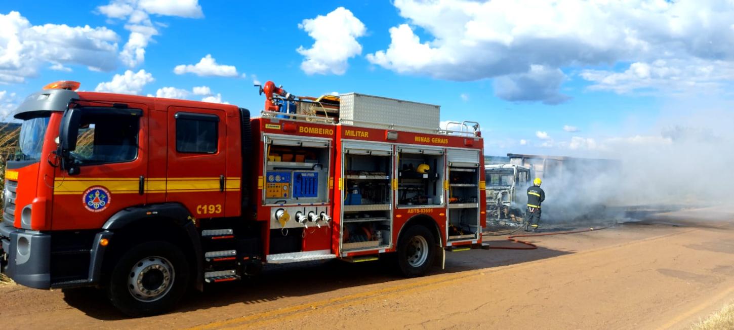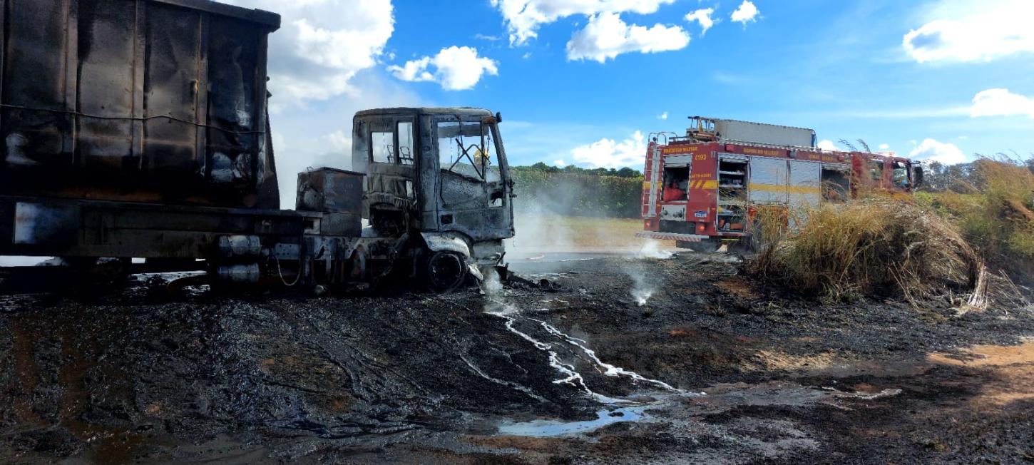 Um caminhão do tipo caçamba agrícola foi completamente destruído por um incêndio na tarde de sábado (7), na MG-188, próximo a Patrocínio.