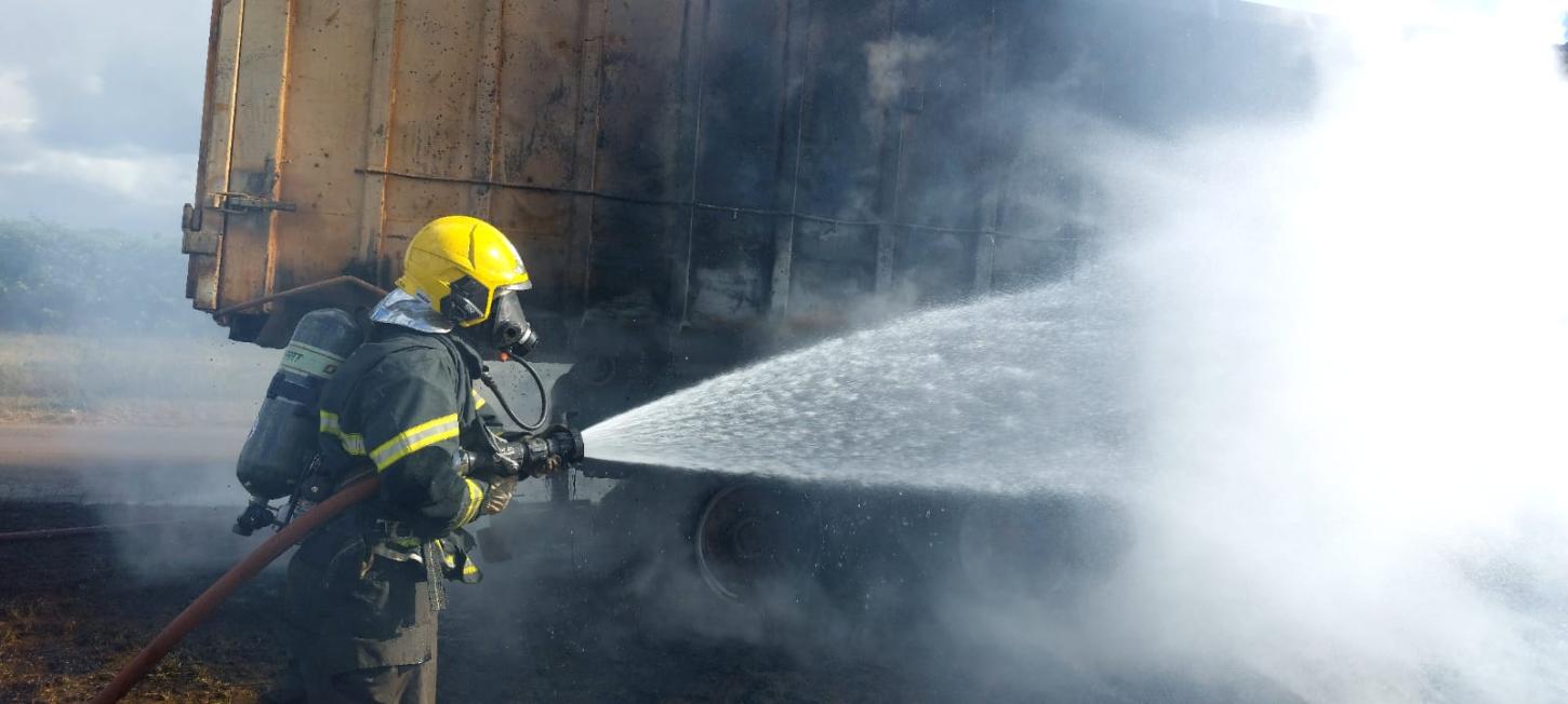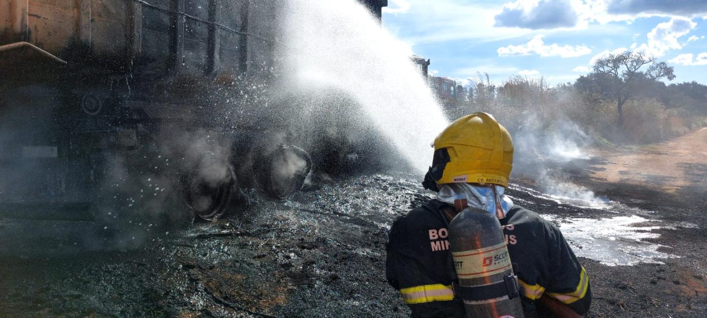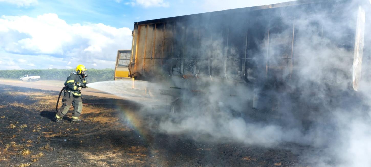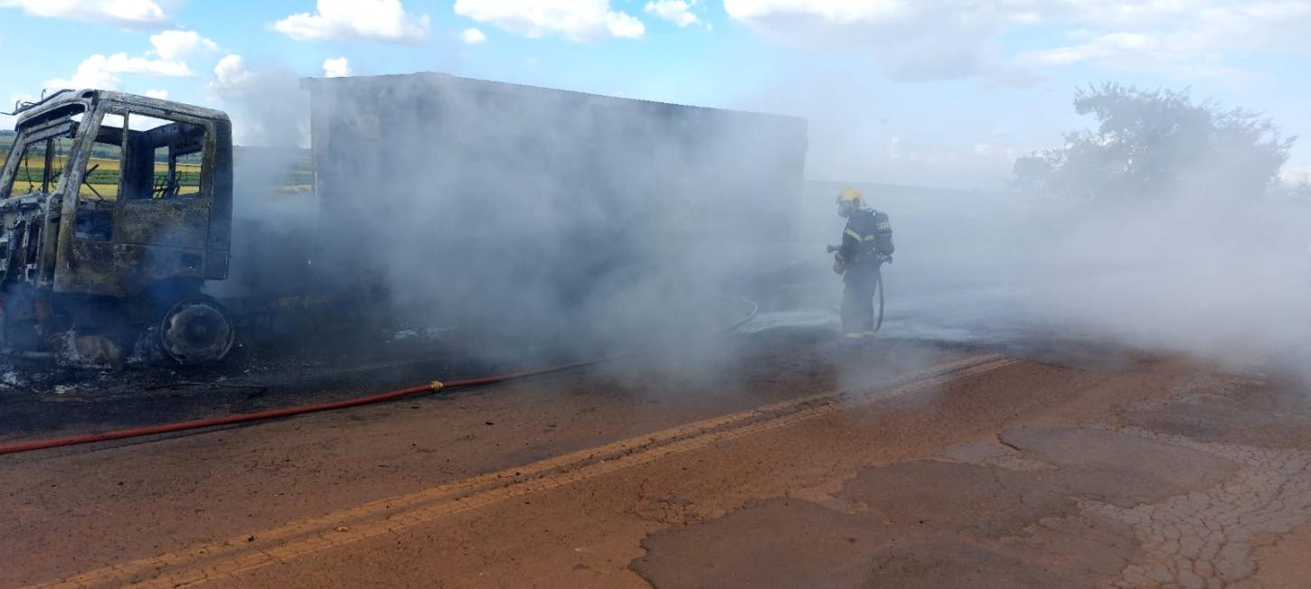Um caminhão do tipo caçamba agrícola foi completamente destruído por um incêndio na tarde de sábado (7), na MG-188, próximo a Patrocínio.