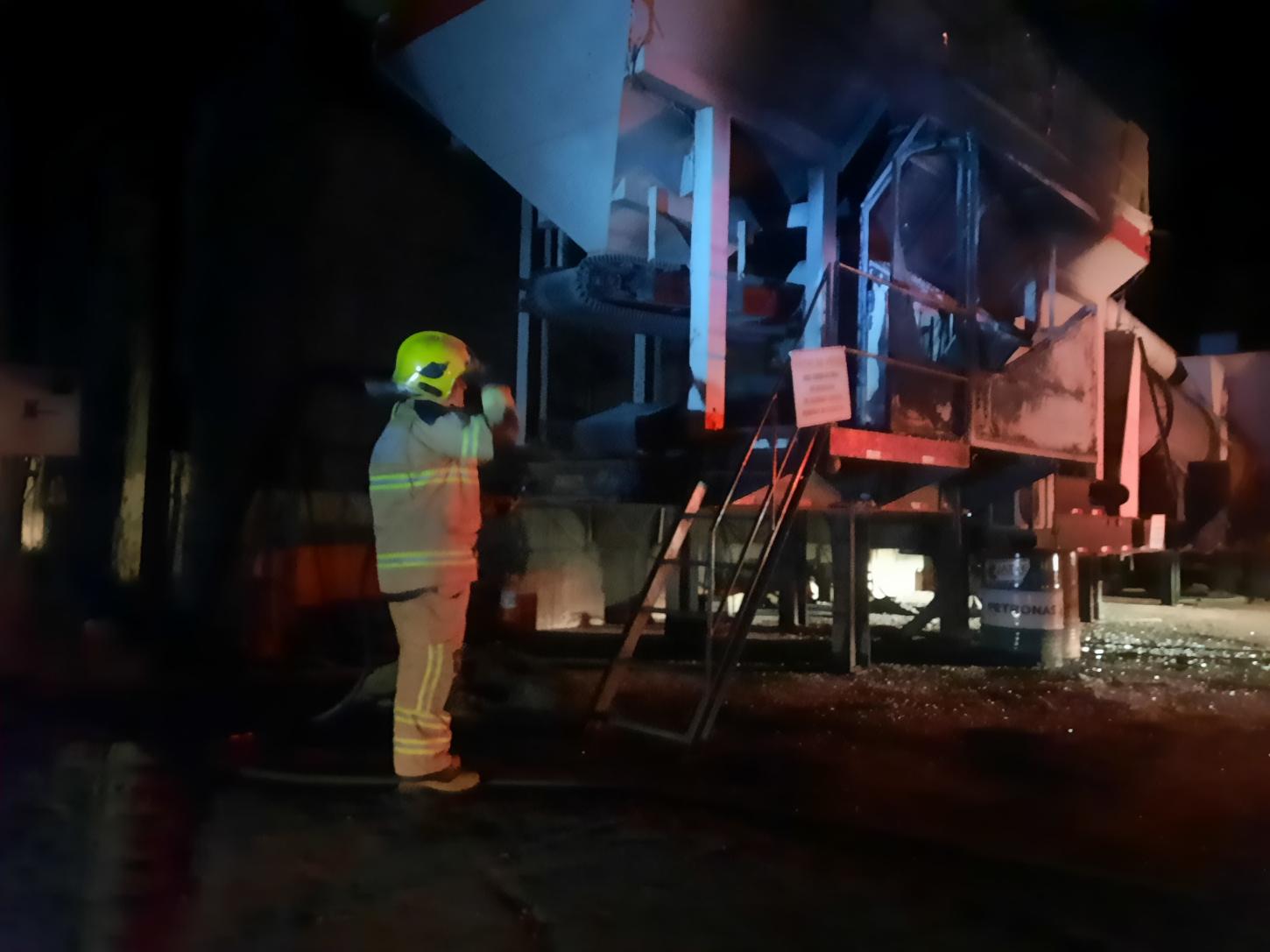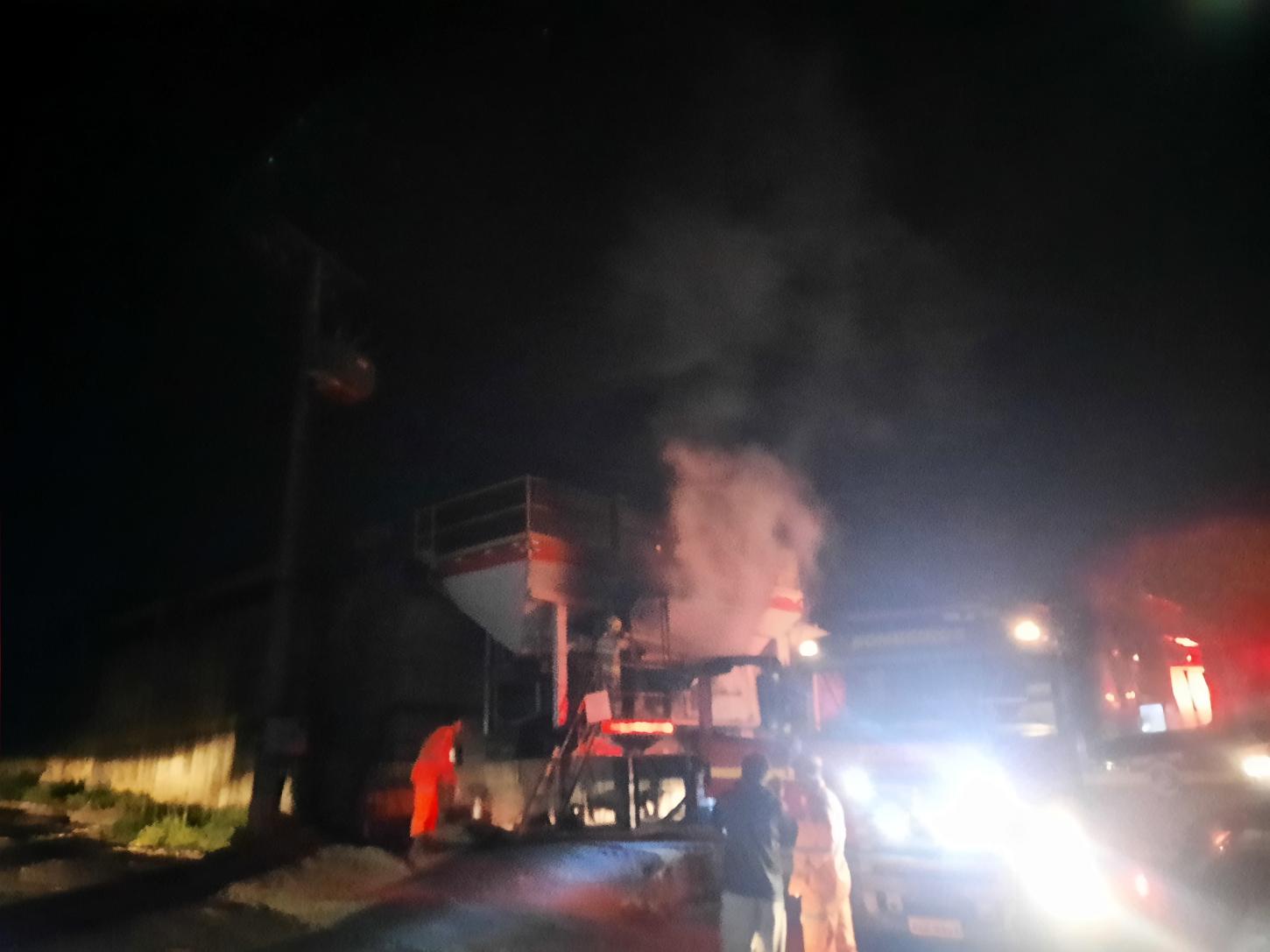 No local, os militares se deparam com incêndio em equipamento industrial de grande porte, usina de asfalto, mais precisamente em sua cabine de comando e atingindo também alguns revestimentos de madeira.