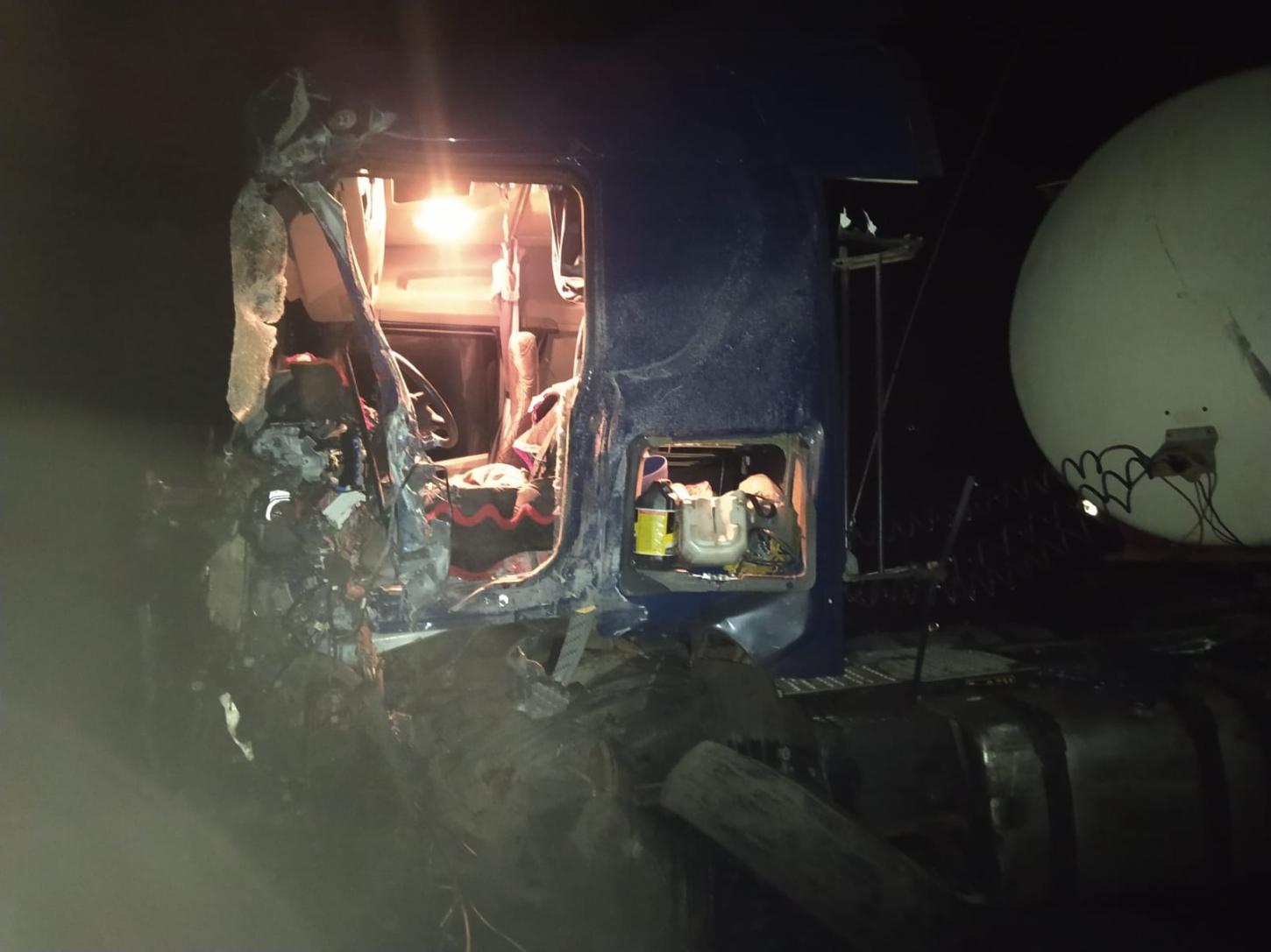 O motorista do caminhão foi socorrido em estado grave. Já o condutor do ônibus sofreu ferimentos leves.