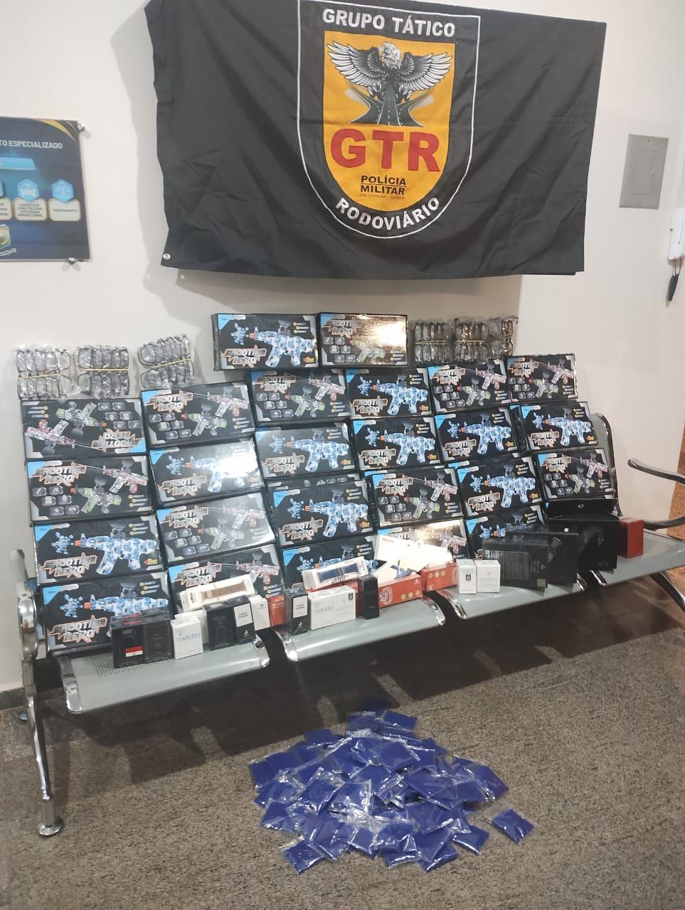 O veículo transportava 21 passageiros que haviam realizado compras na capital paulista. Durante a conferência das bagagens, os militares localizaram uma caixa com 37 armas de bolinha de gel de fabricação chinesa e 100 pacotes de munições de gel, além de 21 perfumes importados, 9 smartwatches também produzidos na China e 50 óculos sem procedência comprovada.