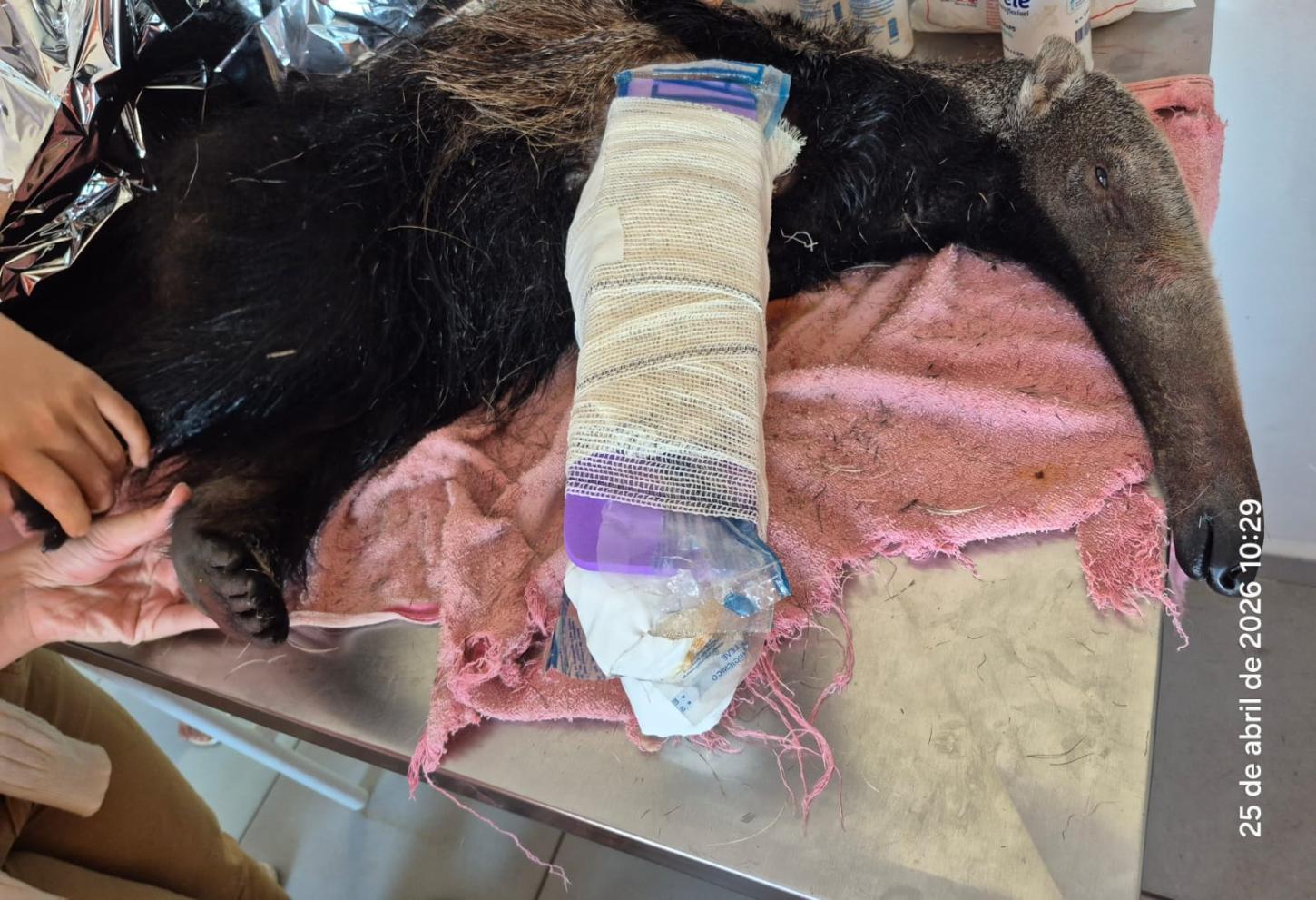 Após cerca de 160 quilômetros de deslocamento, o tamanduá foi entregue à equipe especializada, que ficará responsável pela recuperação e posterior reintegração ao habitat natural.